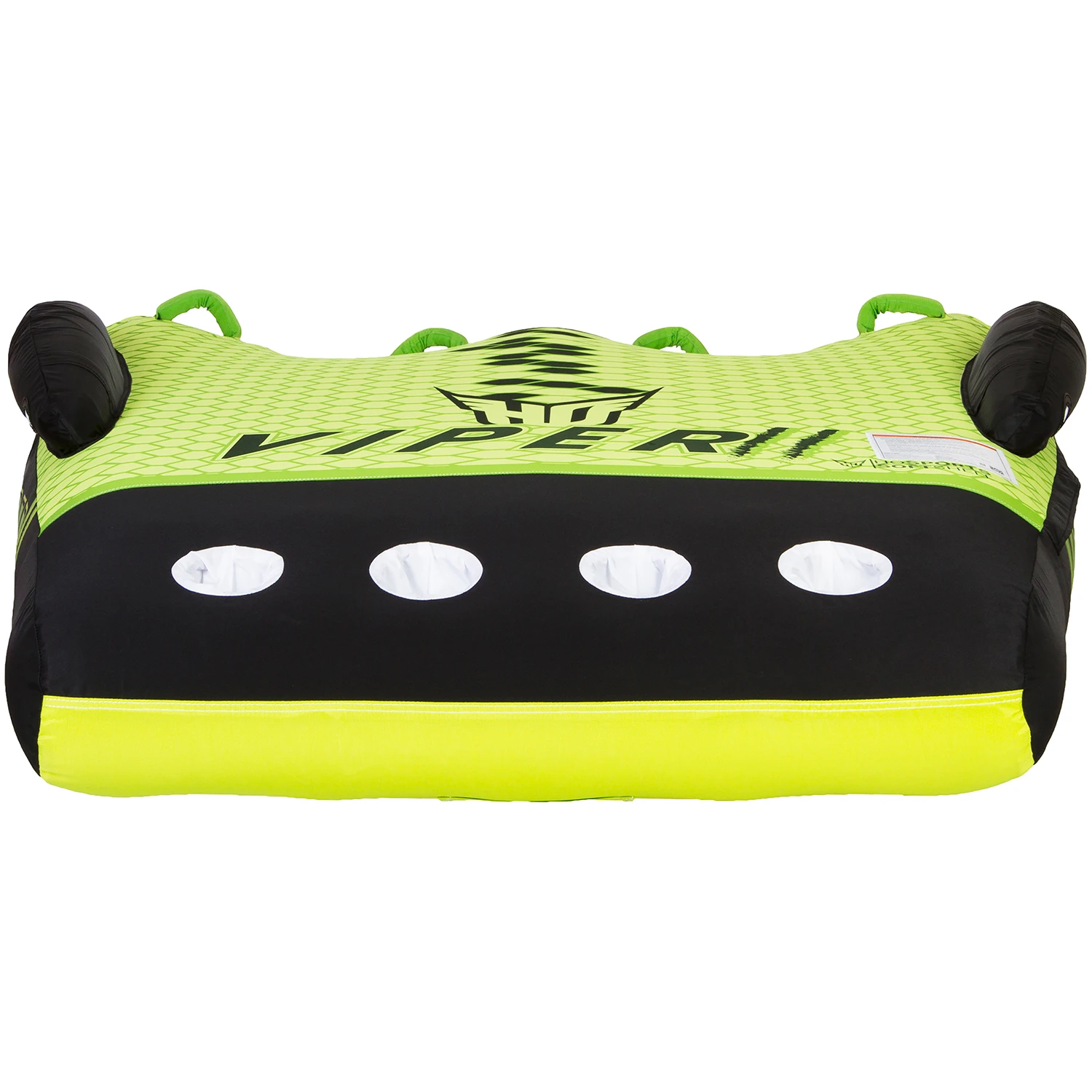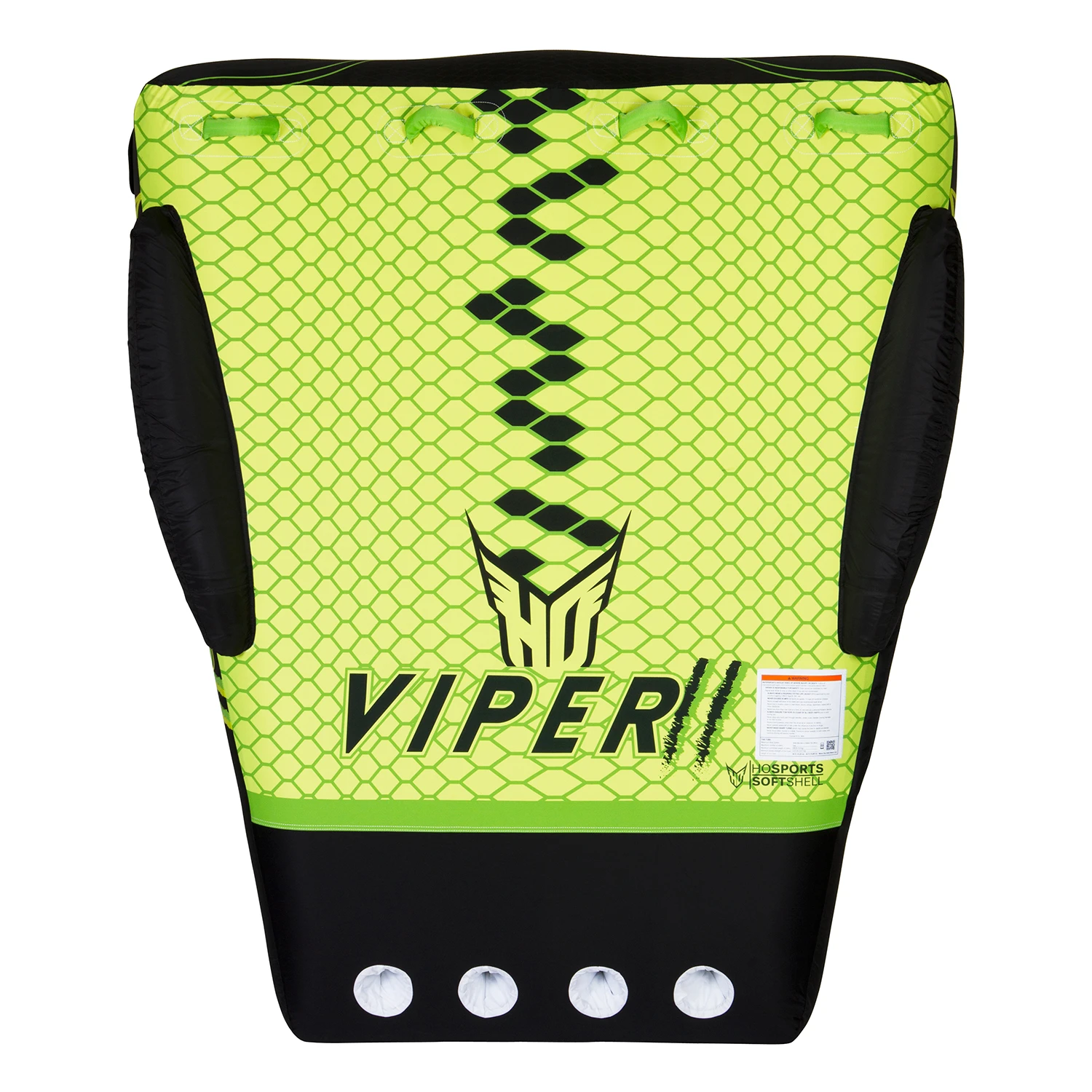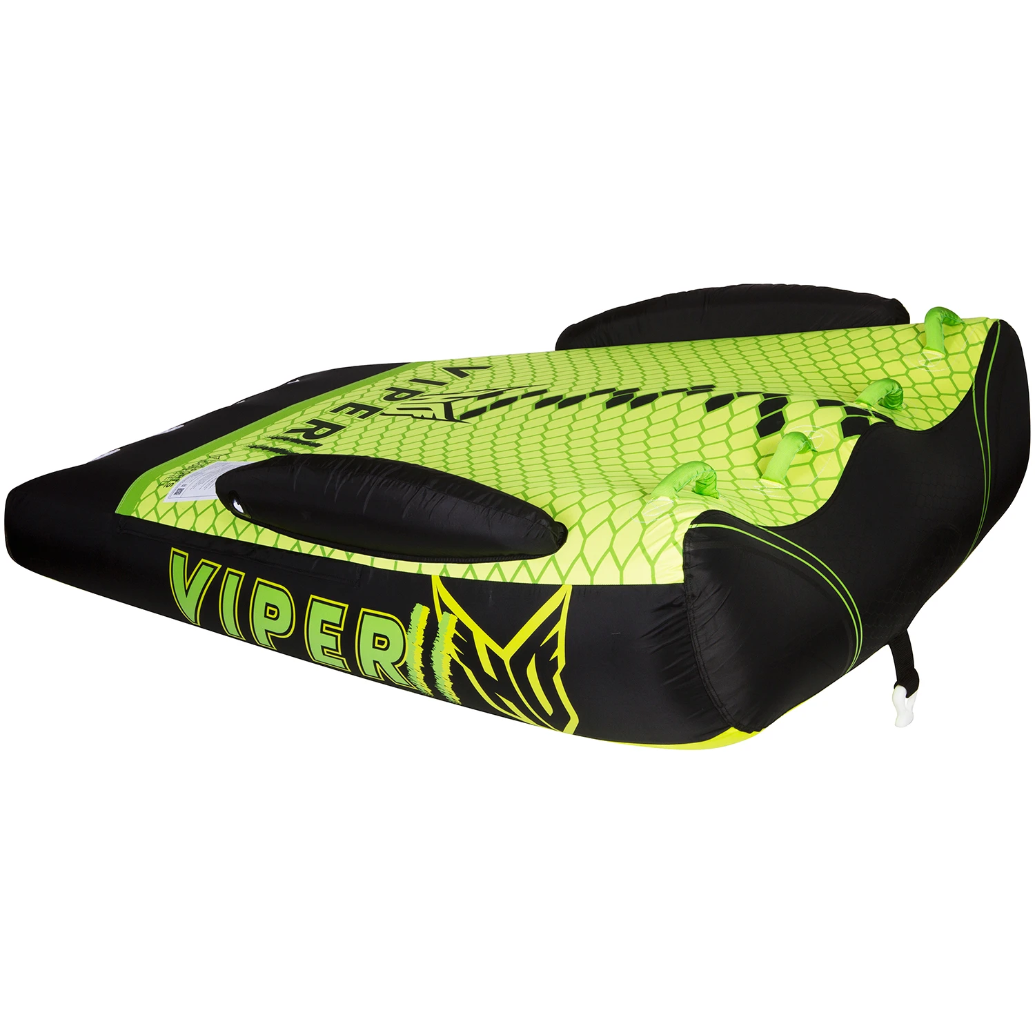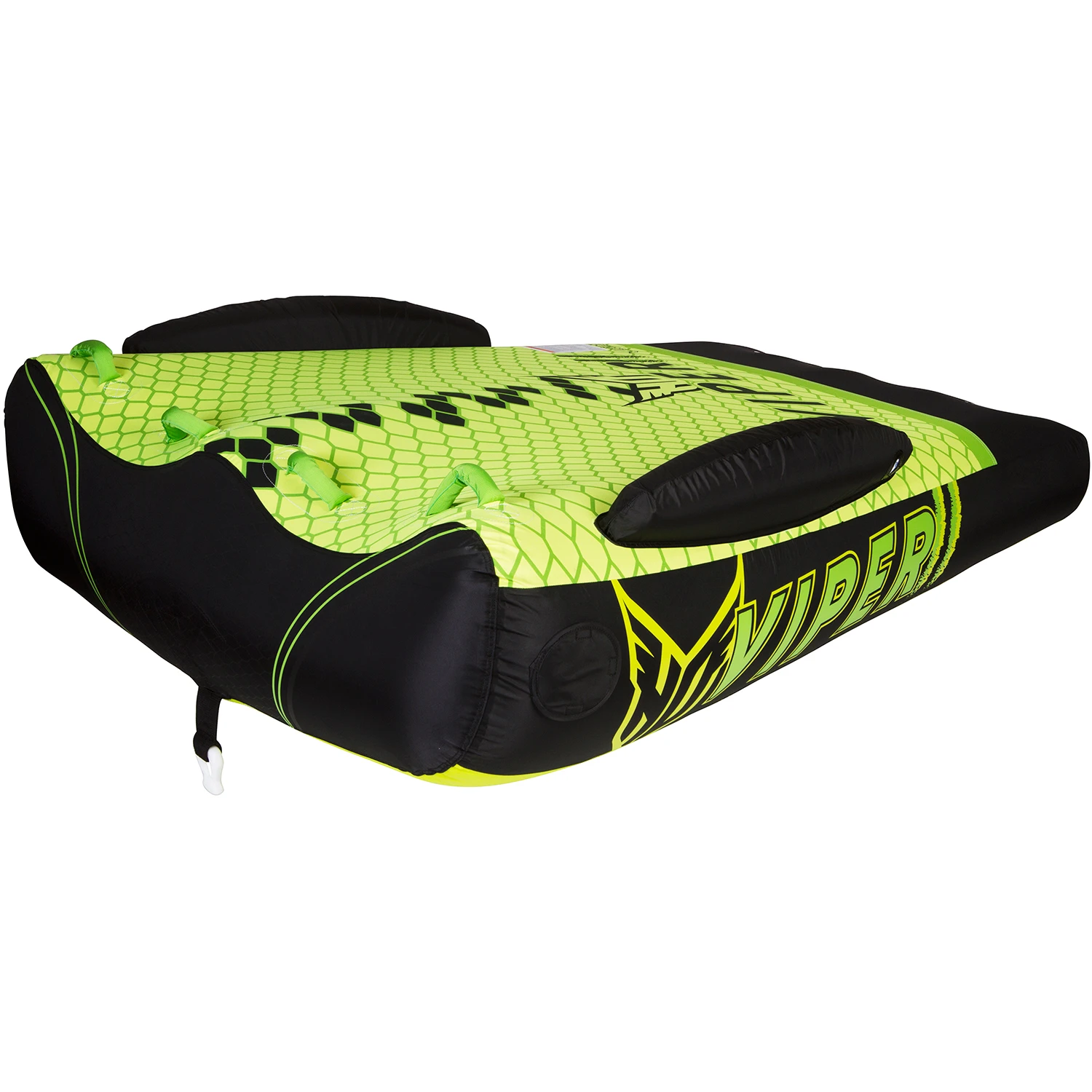 The Viper series brings a new element of fun and comfort to tubing. Its tapered profile puts the riders in a natural riding position and allows for easy re-boarding from the water. The Viper’s extra thick body delivers the most comfortable ride of any deck tube out there. Each rider has a spot of their own on the unique, contoured top while the new, innovative footholds provide relief when you can’t hold on much longer. Softshell technology rounds out the features list making the Viper the tube of choice for your family’s boating needs. Don’t get bit with an imitation…get yourself a Viper today.